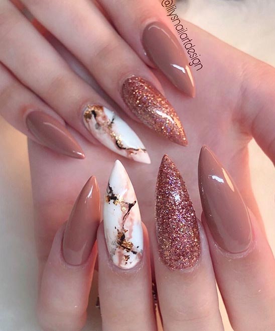 Most Images are Rose Gold and Brown Designs of Nails. You can also Like that and Pink Marble Nails.
