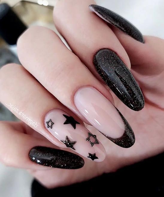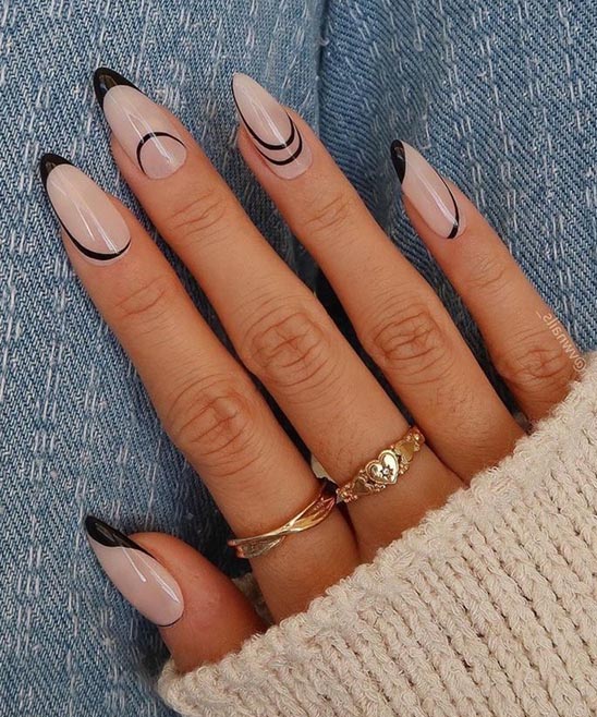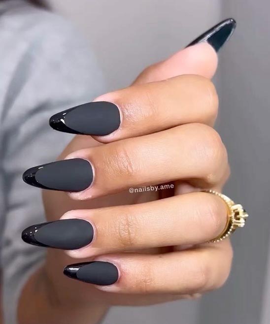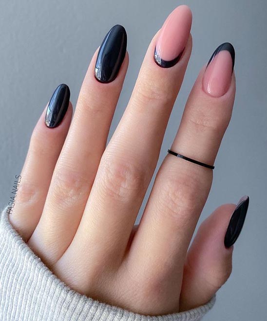 Black French Tip Almond Nails Photos 2026-2025
