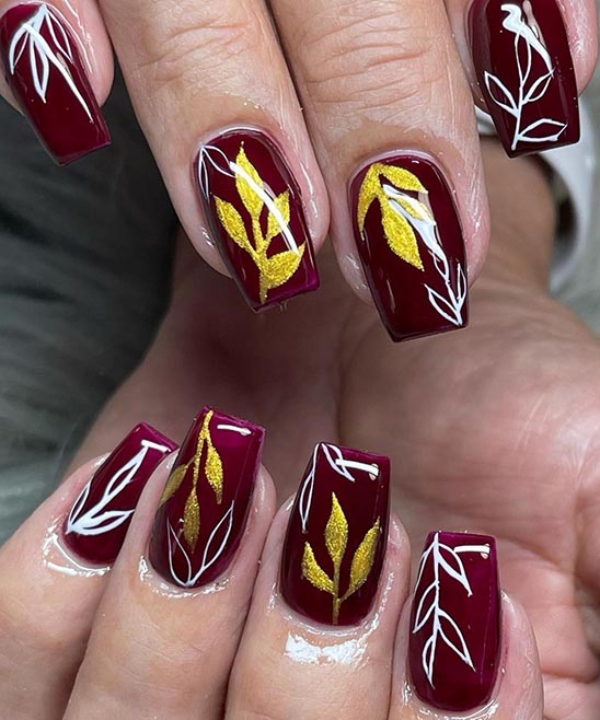 Most Images are Short and Gel Designs of Nails. You can also Like that or Burgundy and Gold Nails.