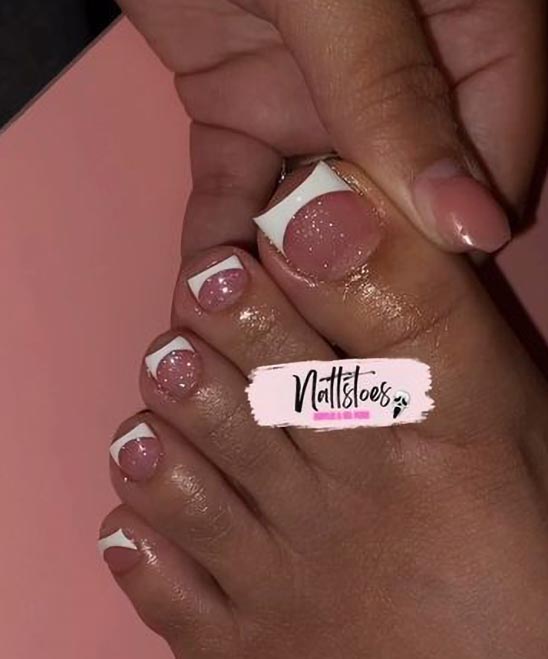 Glitter French Manicure Toe Nail Designs 2026-2025