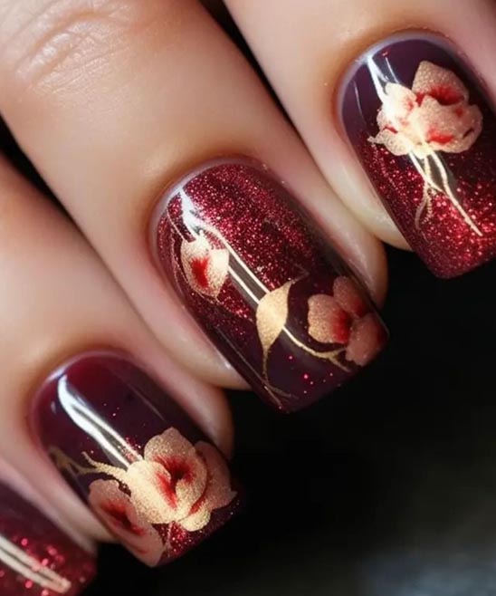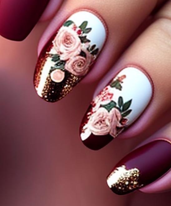 Some Picture is Acrylic, and Rose Designs are also available or Burgundy Nails With Gold.