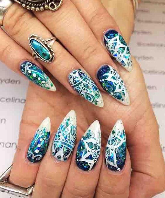 Most Images are Blue and White Designs of Nails. You can also Like that.
